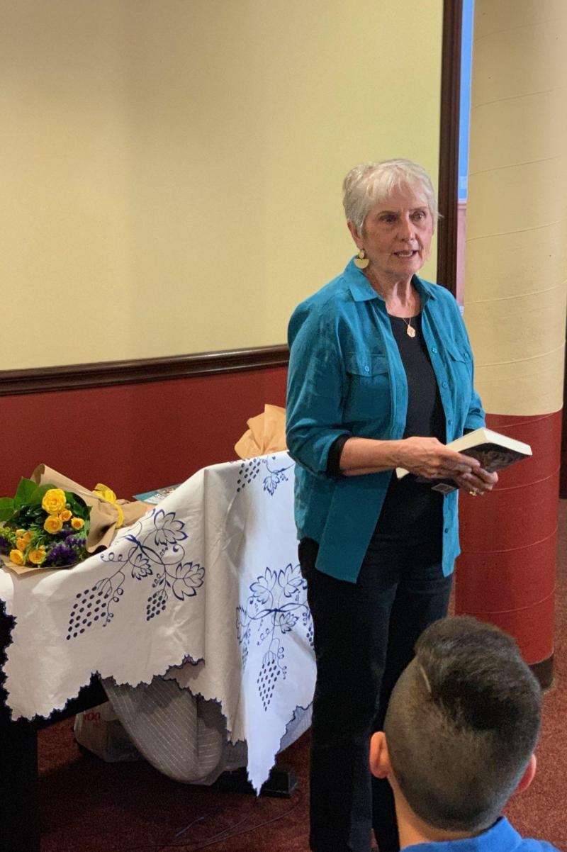 Jane Hancock and Mary Simeone presenting War and Pierogi.